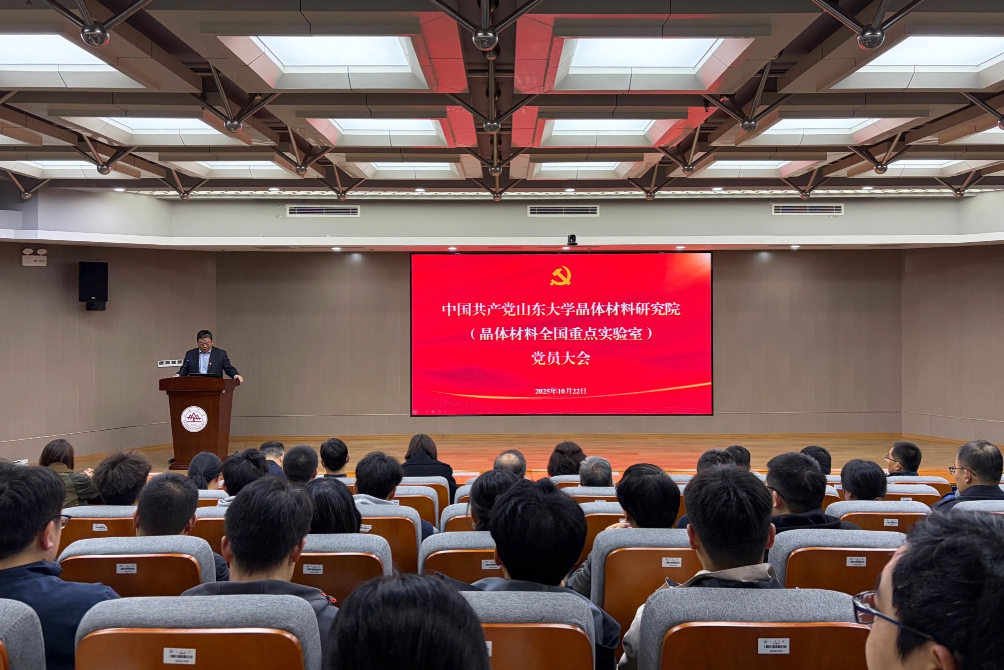 10月22日,中国共产党山东大学晶体材料研究院(晶体材料全国重点实验室)党员大会胜利召开。晶体材料全国重点实验室主任徐现刚主持会议。晶体材料全国重点实验室领导班子成员、师生党员参加会议。