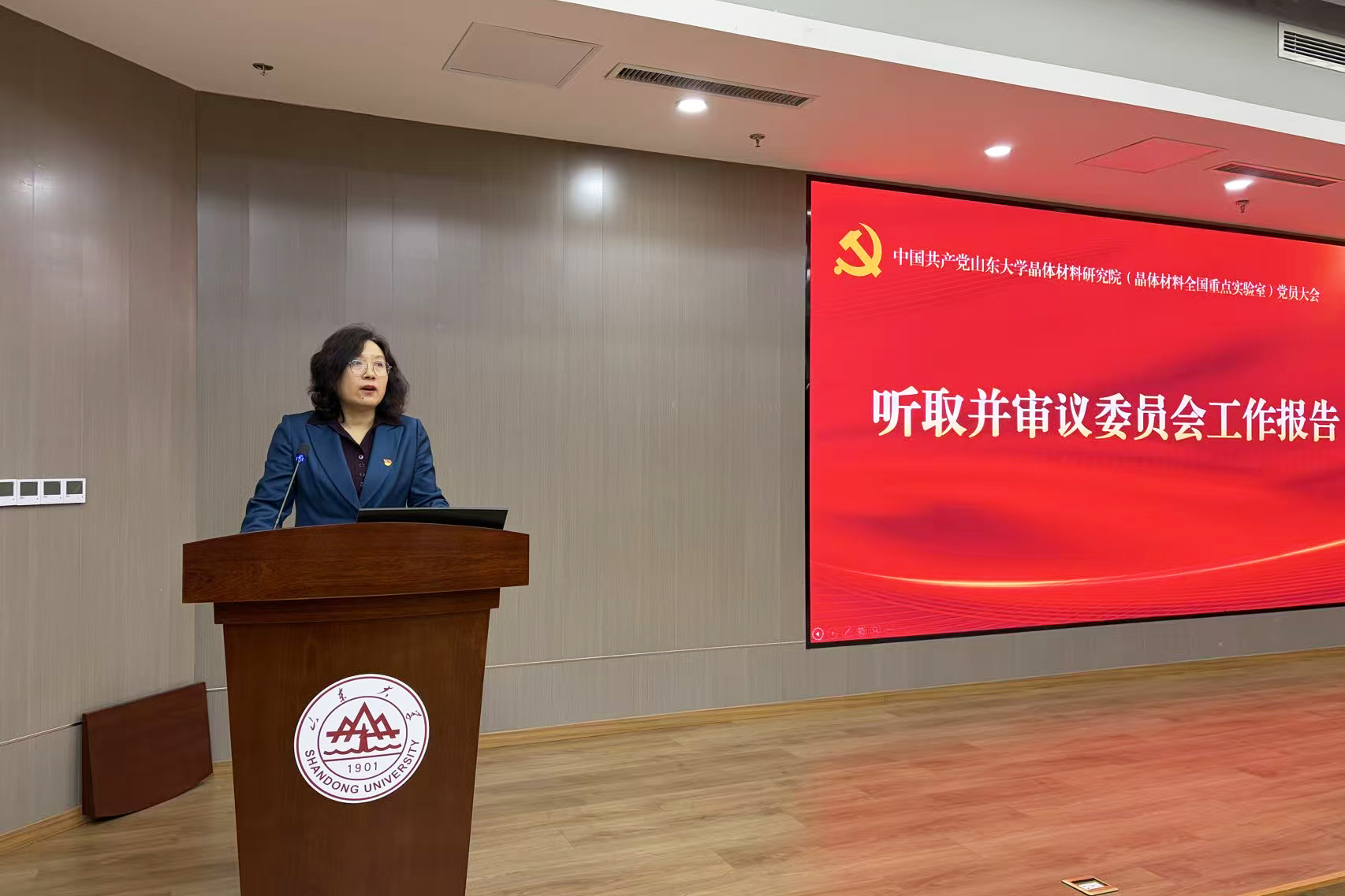 大会在庄严的国歌声中拉开序幕。晶体材料研究院(晶体材料全国重点实验室)党委书记刘全芬同志作题为《凝心聚力勇毅前行全力建设晶体材料领域一流创新高地》工作报告。