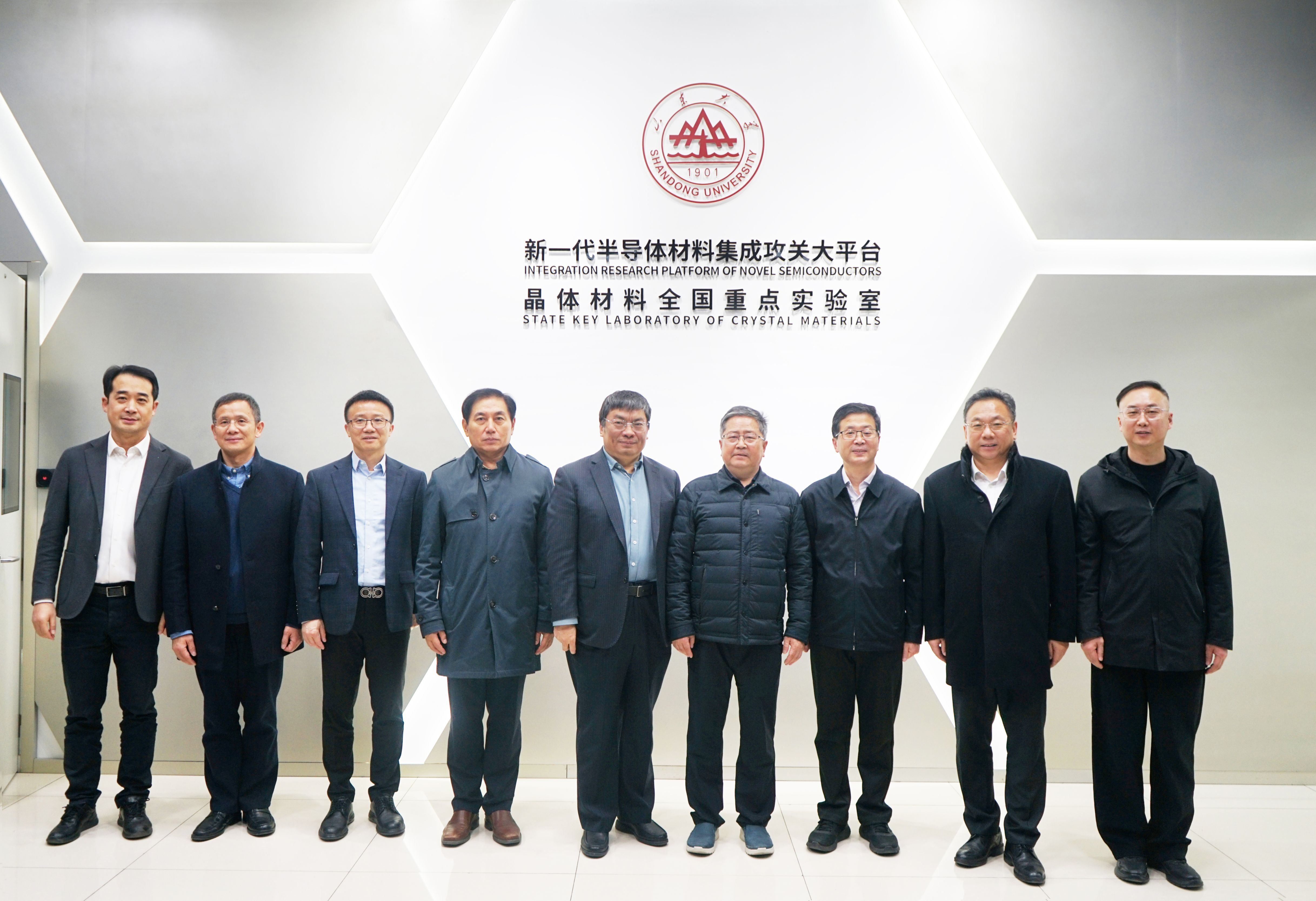 11月24日下午,济南市人民政府党组成员、副市长谢堃,山东省集成电路协会王宏志,歌尔集团董事长姜滨一行来新一代半导体材料集成攻关大平台参观调研,听取平台建设发展情况汇报。晶体材...