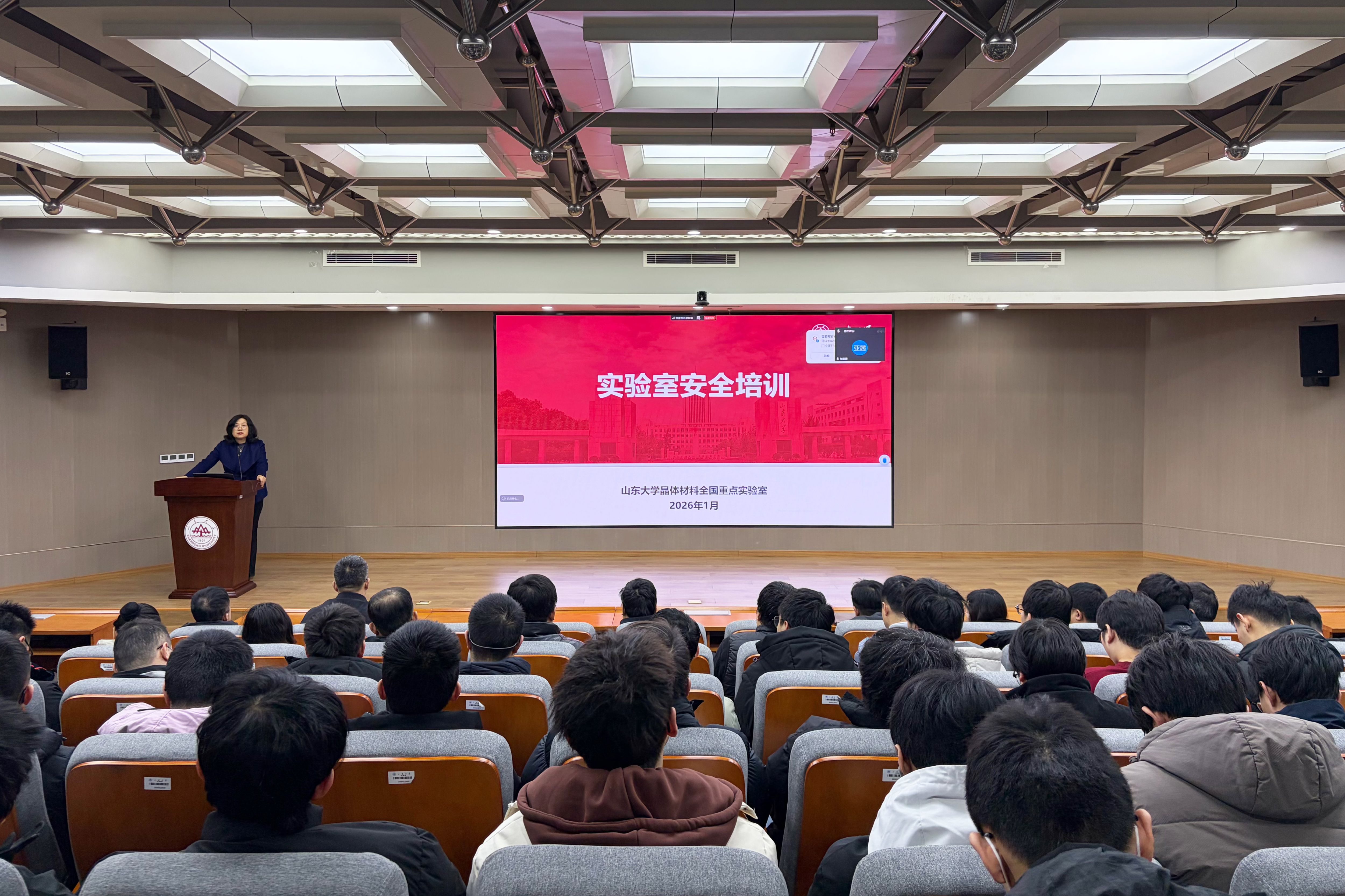 新一代半导体材料集成攻关大平台与晶体材料研究院班子成员、学术团队负责人、实验室安全负责人及学生代表等120余人参加本次活动。