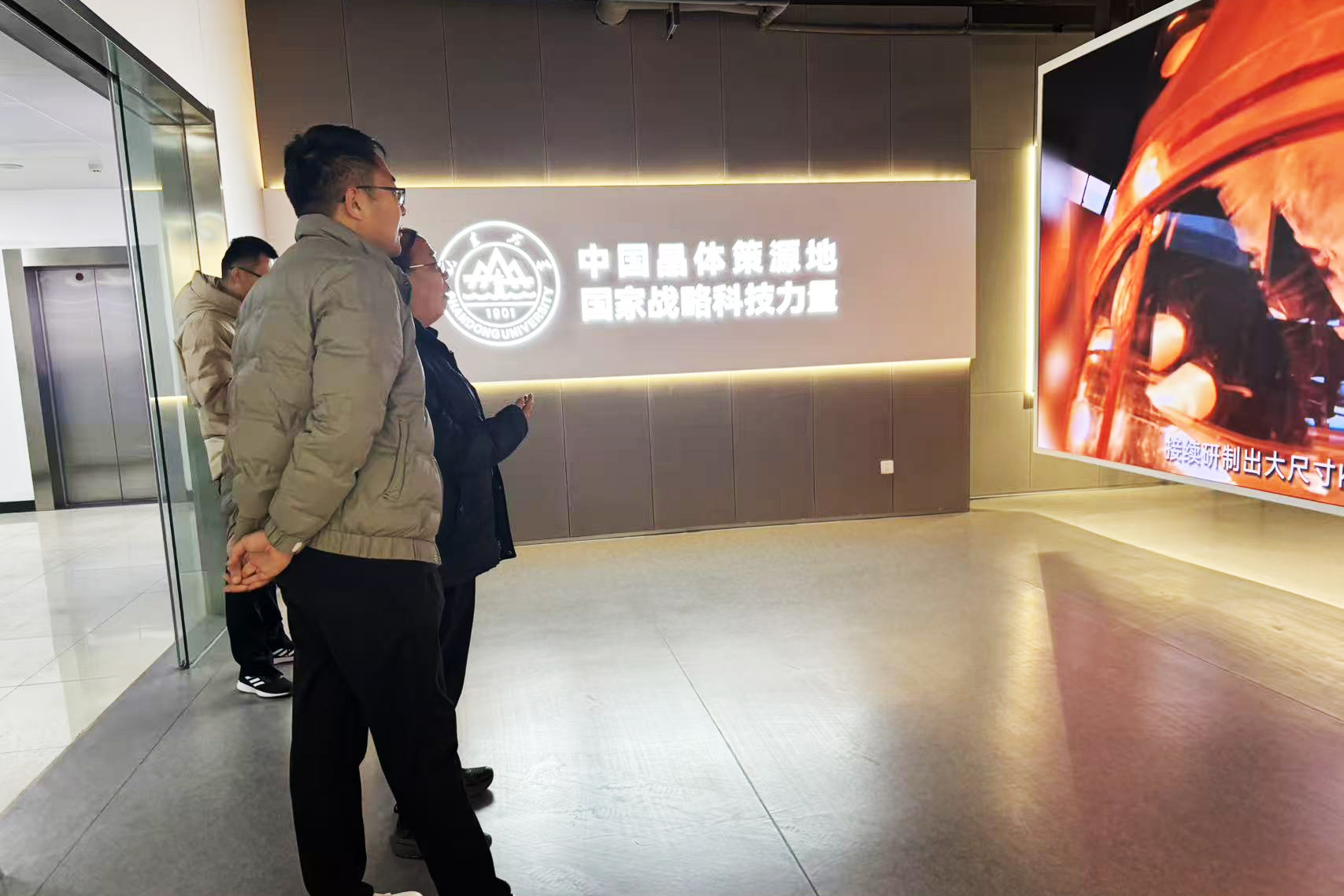 1月9日,航空工业沈阳飞机设计研究所(601所)副总师王言伟;部长、型号副总师肖山一行到访新一代半导体材料集成攻关大平台调研参观,实地调研了新一代半导体研发情况,深入了解集成攻关大平台在半导体材料领域的前沿技术和科研进展。山东大学校长助理、科学技术研究院院长刘兆军陪同参观,集成攻关大平台宣传秘书刘莹莹对接讲解。